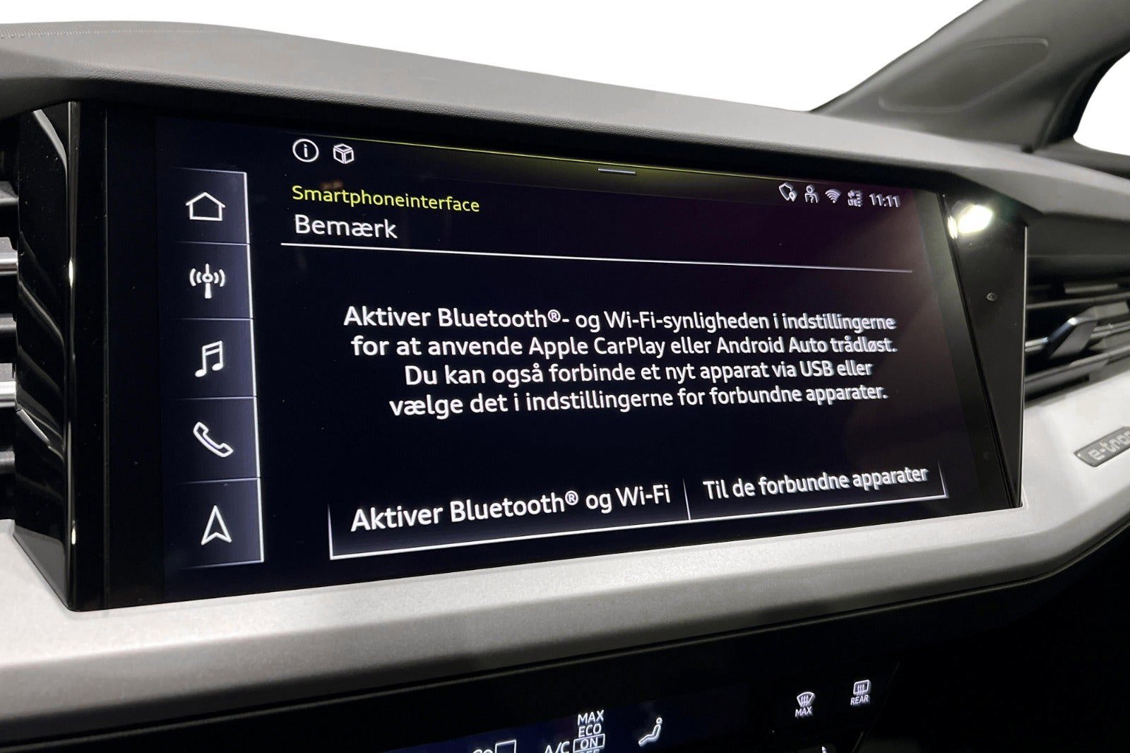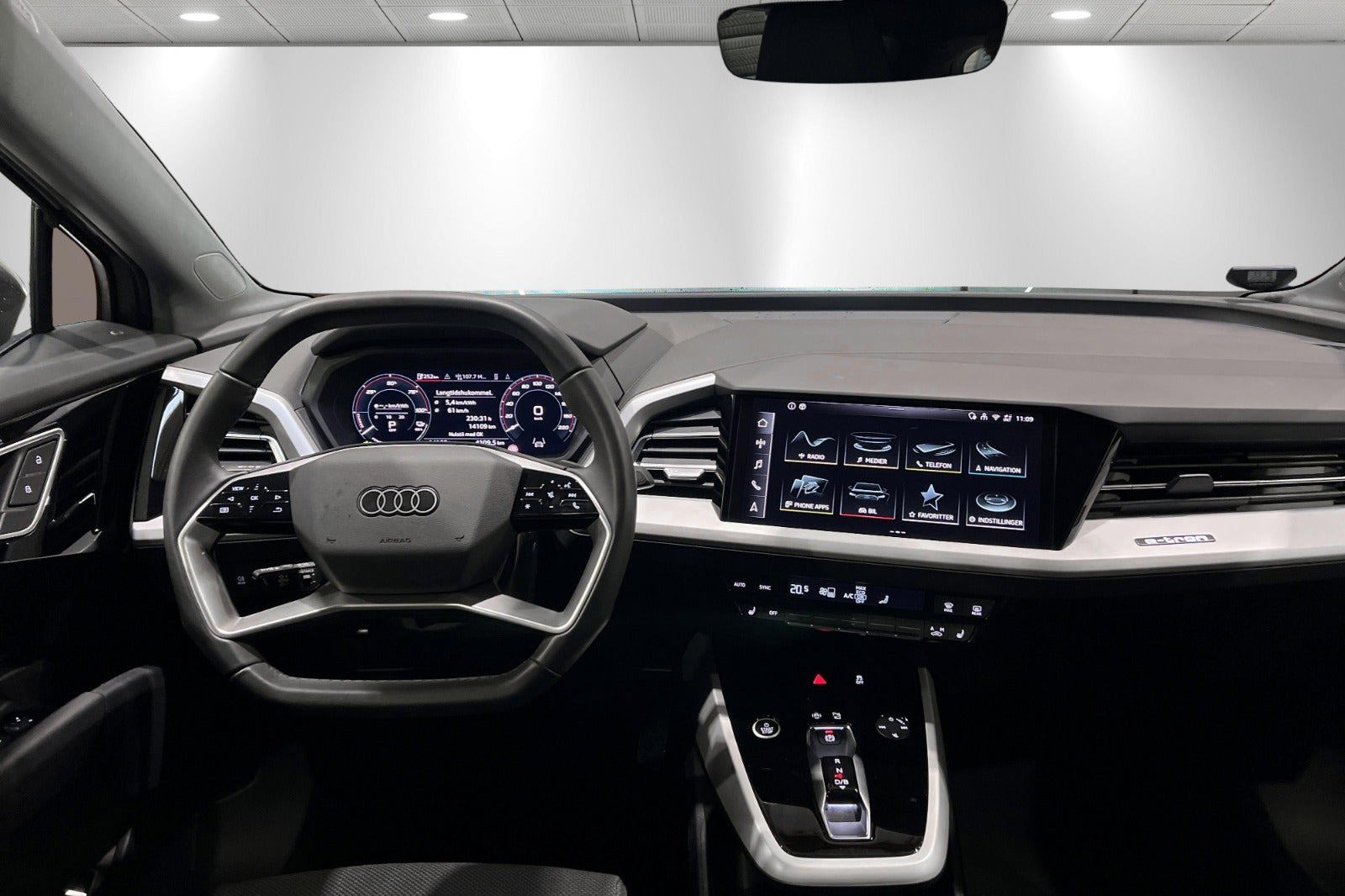 * Udvalgt standardudstyr * Dansk bil fra ny * Navigation med ruteplanner * Varmepumpe * Adaptiv fartpilot * 360 kamera * Audi Smartphone Interface med trådløs Apple CarPlay * Vognbaneskiftadvarsel inklusive udstigningsadvarsel og assistent til registrering af tværgående trafik bagved * Forreste dørruder med akustikglas * Parkeringssensor (for) * Parkeringssensor (bag) * Elektrisk bagklap * Komfortnøgle * Fuldautomatisk klimaanlæg * Multifunktionslæderrat * Elektrisk børnesikring * Kamerabaseret vejskilteassistent * Digital cockpit * Højdejusterbare forsæder * Udvendig temperatur måler * Regnsensor * Sædevarme * 4x el-ruder * Dæktryksmåler * Elektrisk parkeringsbremse * Træthedsregistrering * DAB-radio * Musikstreaming via bluetooth * Armlæn * Isofix på passagersæder og bagsæde * Bagagerumsdækken * Kopholder * Splitbagsæde * Automatisk lys * Vognbaneassistent * Automatisk nødbremsesystem